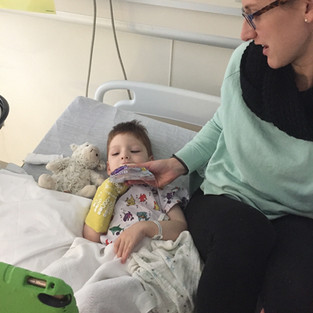 Today was a tough day, as was expected, because James is recovering from yesterday's surgery. Whenever he wakes up he has had some painful spasms that make him quite upset requiring some attention from the pain team here in St. Louis. However, he is recovering well. James has been able to drink some apple juice and eat a peanut butter sandwich already.